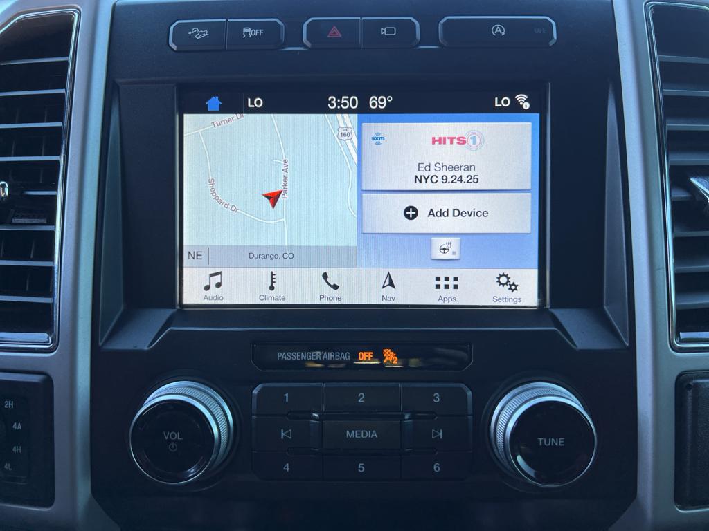 Our dealership has already run the CARFAX report and it is clean. A clean CARFAX is a great asset for resale value in the future. This Ford F-150 has a V6, 3.5L high output engine. When you encounter slick or muddy roads, you can engage the four wheel drive on it and drive with confidence. This 1/2 ton pickup warns of approaching vehicles with Cross-Traffic Alert. An off-road package is equipped on the vehicle. The installed navigation system will keep you on the right path. A trailer braking system is already installed on this unit.