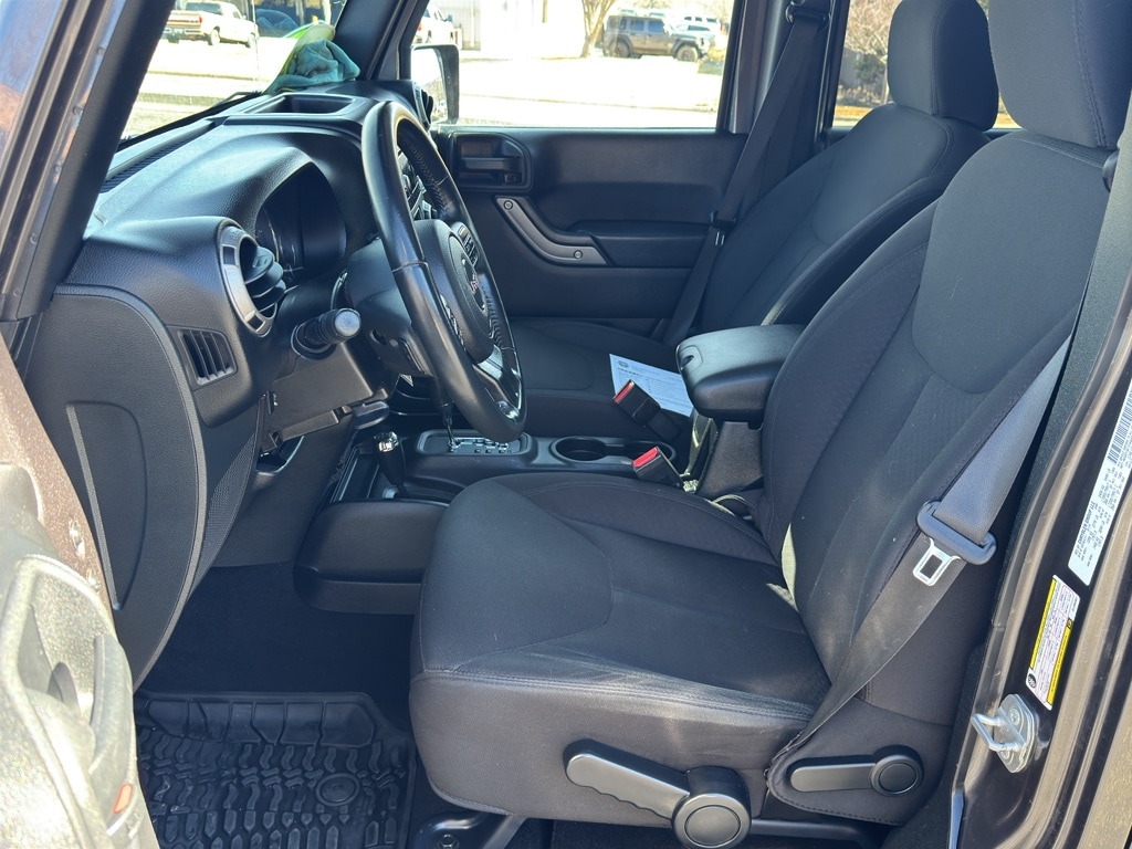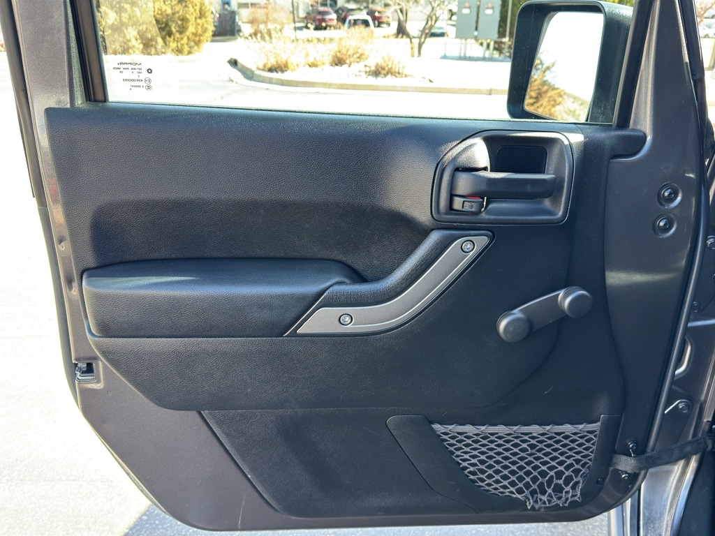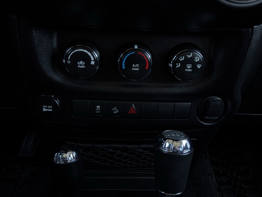 Our dealership has already run the CARFAX report and it is clean. A clean CARFAX is a great asset for resale value in the future. It has a V6, 3.6L high output engine. This Jeep Wrangler has four wheel drive capabilities. The satellite radio system in it gives you access to hundreds of nation-wide radio stations with a clear digital signal. Bluetooth technology is built into this unit, keeping your hands on the steering wheel and your focus on the road. The fog lights cut through the weather so you can see what's ahead. Maintaining a stable interior temperature in this mid-size suv is easy with the climate control system. The Jeep Wrangler features cruise control for long trips. Electronic Stability Control is one of many advanced safety features on it.