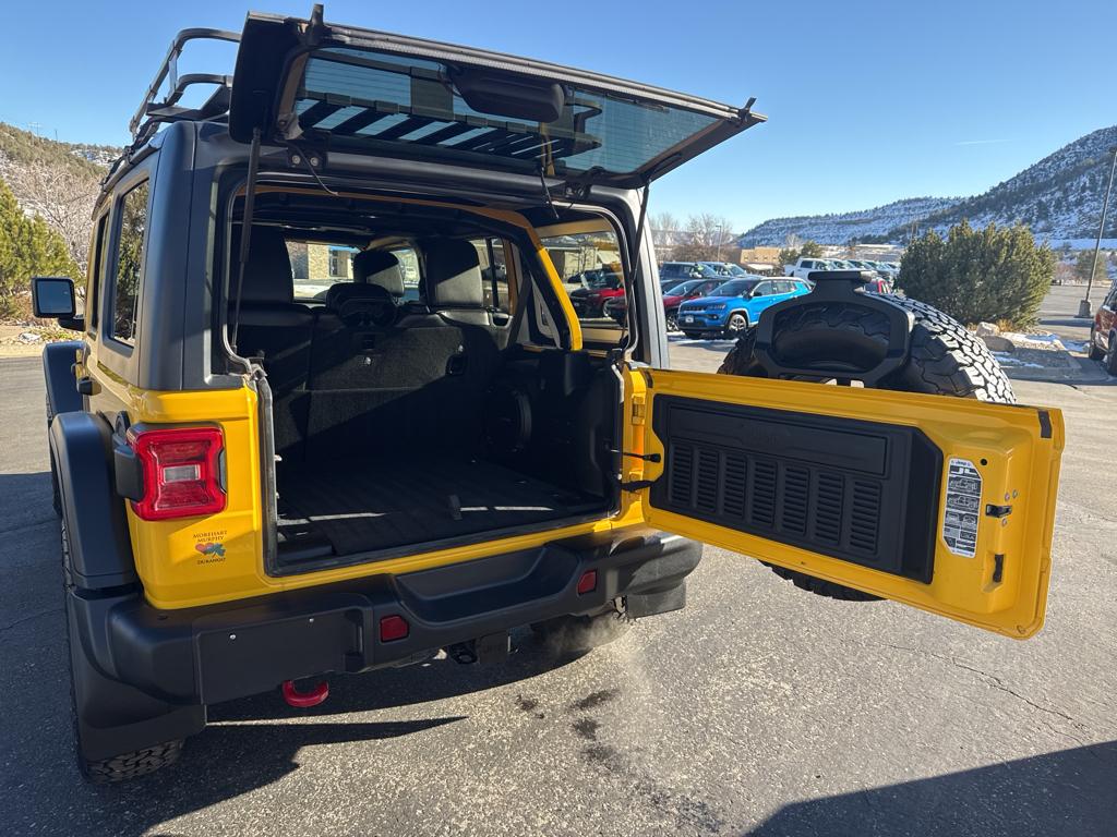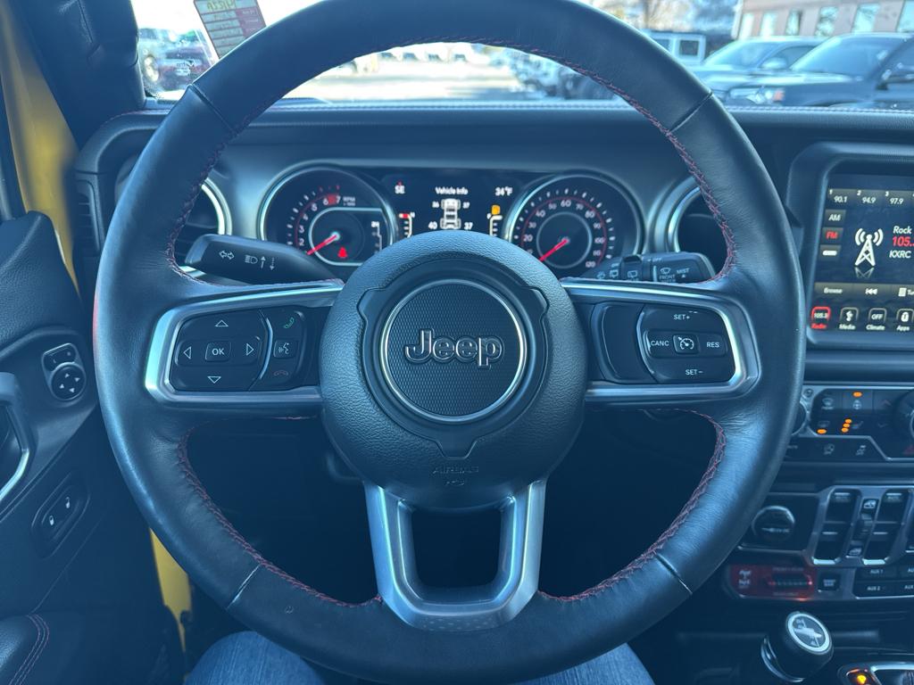 Cold Weather Group: Heated Front Seats; Heated Steering Wheel LED Lighting Group: Daytime Running Lamps LED Accents; Front LED Fog Lamps; LED Reflector Headlamps; LED Taillamps Quick Order Package 28R Trailer Tow and Heavy Duty Electrical Group: Class II Receiver Hitch; 700 Amp Maintenance Free Battery; 7 and 4 Pin Wiring Harness; Auxiliary Switches; 240 Amp Alternator 8.4" Radio and Premium Audio Group: SiriusXM Traffic Plus; Alpine Premium Audio System; HD Radio; Uconnect 4C Navigation Radio with 8.4" Display; For Details Visit DriveUconnect.ca; Rear View Auto Dim Mirror; 1-Year SiriusXM Guardian Trial; 5-Year SiriusXM Travel Link Service; GPS Navigation; 5-Year SiriusXM Traffic Service; SiriusXM Travel Link; 4G LTE Wi-Fi Hot Spot; Emergency/assistance Call; 8.4" Touchscreen Display Steel Bumper Group: Steel Front Bumper; Steel Rear Bumper Leather Trimmed Bucket Seats Alpine Premium Audio System Black 3-Piece Hard Top MOPAR Hardtop Headliner Remote Start System MOPAR All-Weather Floor Mats **Equipment listed is based on original vehicle build and subject to change. Please confirm the accuracy of the included equipment by calling the dealer prior to purchase.**