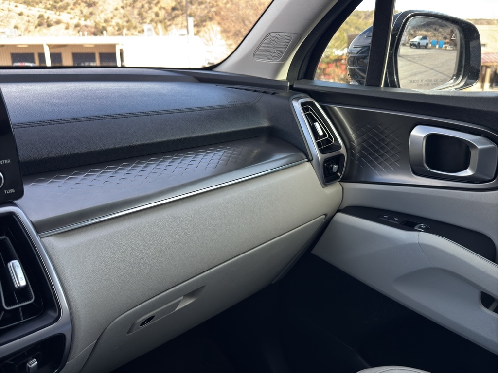 This vehicle is a certified CARFAX 1-owner. Our dealership has already run the CARFAX report and it is clean. A clean CARFAX is a great asset for resale value in the future. This model has a 4 Cyl, 1.6L high output engine. Conquer any rainy, snowy, or icy road conditions this winter with the all wheel drive system on this Kia Sorento Hybrid. Never get into a cold vehicle again with the remote start feature on this 2023 Kia Sorento Hybrid. This mid-size suv utilizes collision avoidance to enhance safety by automatically detecting and evading potential accidents. This mid-size suv stays safely in its lane with Lane Keep Assist. This unit comes equipped with Android Auto for seamless smartphone integration on the road. Apple CarPlay: Seamless smartphone integration for it - stay connected and entertained on the go! Control your garage door with its built in HomeLink System. The leather seats in the vehicle are a must for buyers looking for comfort, durability, and style. You'll never again be lost in a crowded city or a country region with the navigation system on this mid-size suv. Enjoy the convenience of the power liftgate on it.