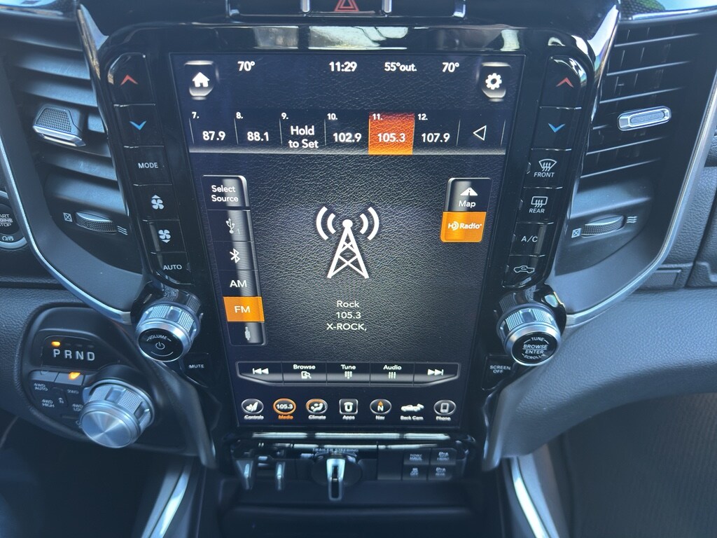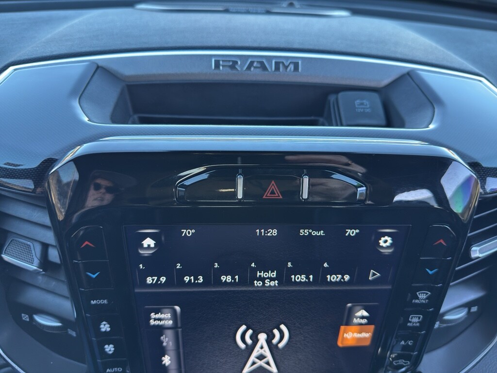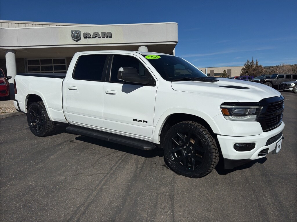 Our dealership has already run the CARFAX report and it is clean. A clean CARFAX is a great asset for resale value in the future. Start this 2021 Ram 1500 from inside with remote start. The Ram 1500 has a V8, 5.7L high output engine. When you encounter slick or muddy roads, you can engage the four wheel drive on this Ram 1500 and drive with confidence. The vehicle's Forward Collision Warning feature alerts drivers to potential front-end collisions. The rear parking assist technology on this unit will put you at ease when reversing. The system alerts you as you get closer to an obstruction. You'll never again be lost in a crowded city or a country region with the navigation system on this 2021 Ram 1500 . This unit offers Android Auto and Apple CarPlay for seamless smartphone integration. Greater towing safety becomes standard with the installed trailer brake.