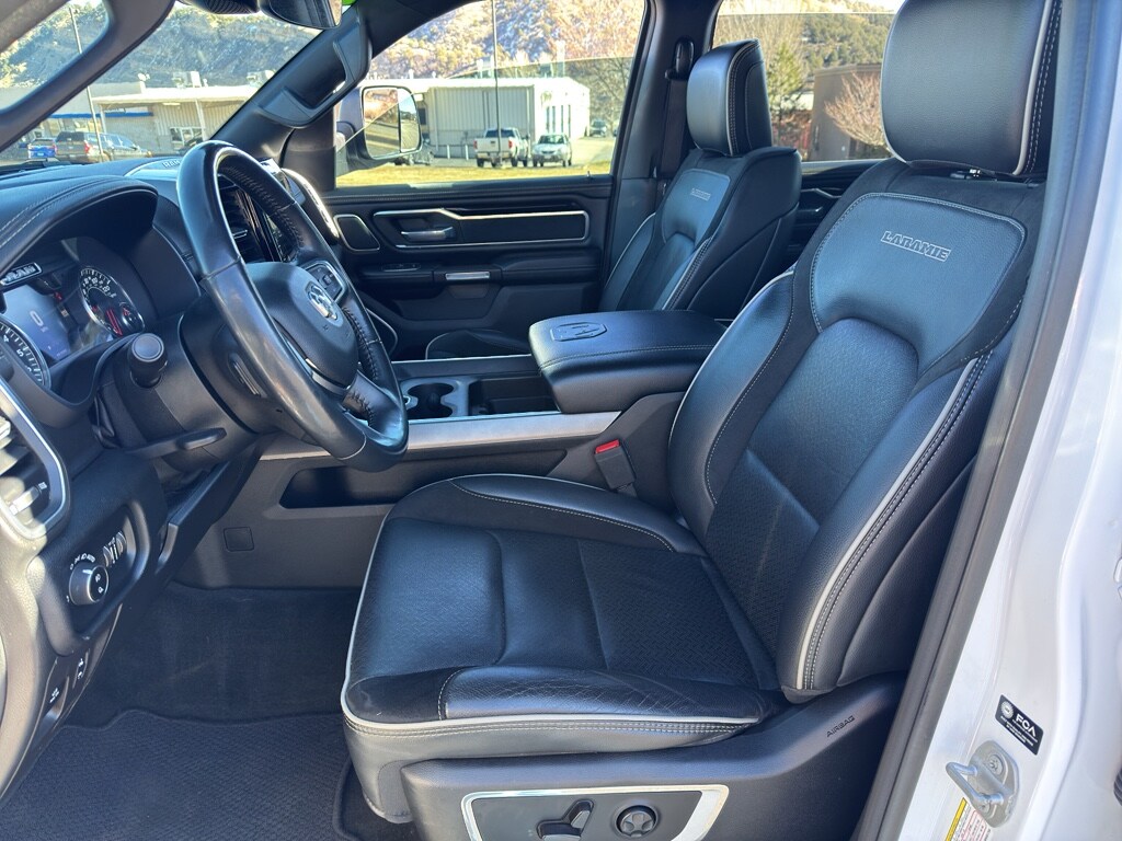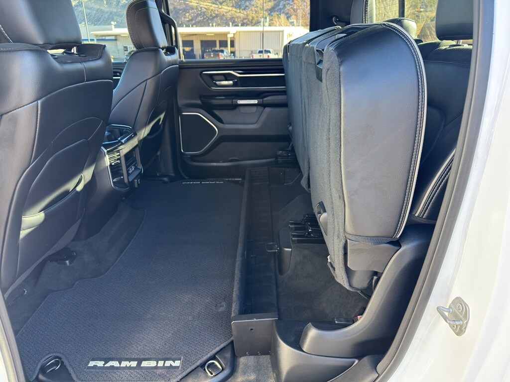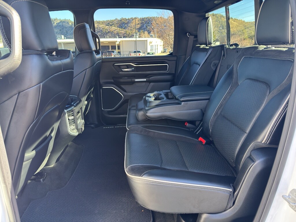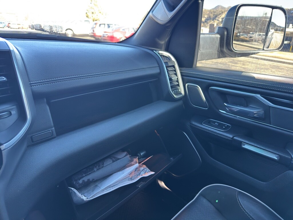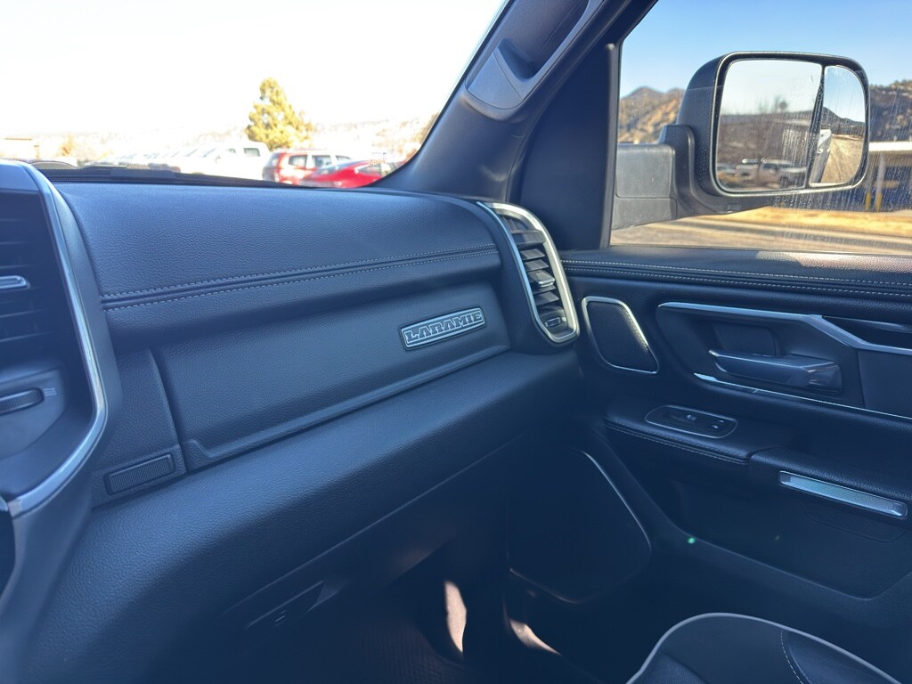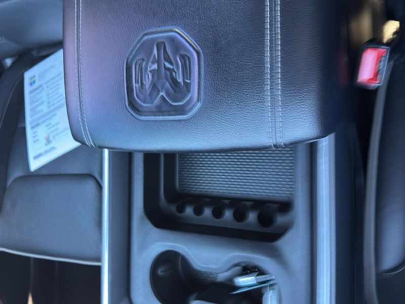 Quick Order Package 27H Laramie Laramie Level 2 Equipment Group: Blind Spot and Cross Path Detection; Rain Sensitive Windshield Wipers; ParkSense Front/rear Park Assist with Stop; Rear 60/40 Folding Split Recline Seat; Remote Tailgate Release; Harman/kardon 19 Speaker Premium Sound; Rear Underseat Compartment Storage; Auto High Beam Headlamp Control; Heated Second Row Seats; Tailgate Ajar Warning Lamp; Foam Bottle Insert (door Trim Panel); Auto Dimming Exterior Passenger Mirror Night Edition: Leather Trimmed Bucket Seats; Accent Color Premium Power Mirrors; Black Headlamp Bezels; Sport Performance Hood; Body Color Door Handles; 22" X 9" Forged Aluminum Wheels; 285/45R22XL BSW All Season Tires; MOPAR Black Tubular Side Steps; Black Exterior Truck Badging; Anti-Spin Differential Rear Axle; Black Interior Accents; Dual Exhaust with Black Tips; Body Color Front Bumper; Grille Surround 3 Black Texture 2 Black; Auto Dimming Exterior Passenger Mirror; Body Color Rear Bumper with Step Pads; Black Painted Exterior Mirrors Caps Protection Group: Steering Gear Skid Plate; Tow Hooks; Transfer Case Skid Plate; Front Suspension Skid Plate; Fuel Tank Skid Plate Trailer Tow Group: Trailer Light Check; Trailer Brake Control; Trailer Reverse Steering Control; Trailer Tire Pressure Monitoring System Uconnect 12 Radio with Navigation Leather Trimmed Bucket Seats Anti-Spin Differential Rear Axle ParkSense Front/rear Park Assist with Stop Black Power-Fold Trailer Tow Mirrors Trailer Brake Control Rear Underseat Compartment Storage 3.92 Rear Axle Ratio **Equipment listed is based on original vehicle build and subject to change. Please confirm the accuracy of the included equipment by calling the dealer prior to purchase.**