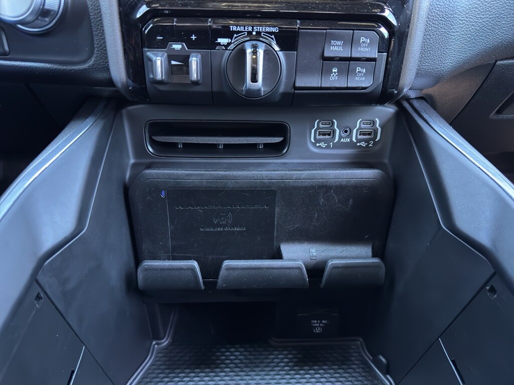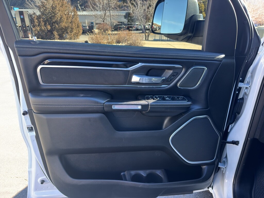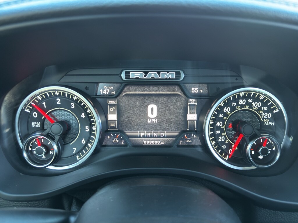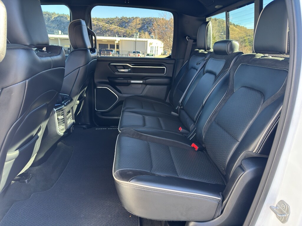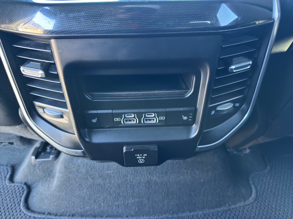 Quick Order Package 27H Laramie Laramie Level 2 Equipment Group: Blind Spot and Cross Path Detection; Rain Sensitive Windshield Wipers; ParkSense Front/rear Park Assist with Stop; Rear 60/40 Folding Split Recline Seat; Remote Tailgate Release; Harman/kardon 19 Speaker Premium Sound; Rear Underseat Compartment Storage; Auto High Beam Headlamp Control; Heated Second Row Seats; Tailgate Ajar Warning Lamp; Foam Bottle Insert (door Trim Panel); Auto Dimming Exterior Passenger Mirror Night Edition: Leather Trimmed Bucket Seats; Accent Color Premium Power Mirrors; Black Headlamp Bezels; Sport Performance Hood; Body Color Door Handles; 22" X 9" Forged Aluminum Wheels; 285/45R22XL BSW All Season Tires; MOPAR Black Tubular Side Steps; Black Exterior Truck Badging; Anti-Spin Differential Rear Axle; Black Interior Accents; Dual Exhaust with Black Tips; Body Color Front Bumper; Grille Surround 3 Black Texture 2 Black; Auto Dimming Exterior Passenger Mirror; Body Color Rear Bumper with Step Pads; Black Painted Exterior Mirrors Caps Protection Group: Steering Gear Skid Plate; Tow Hooks; Transfer Case Skid Plate; Front Suspension Skid Plate; Fuel Tank Skid Plate Trailer Tow Group: Trailer Light Check; Trailer Brake Control; Trailer Reverse Steering Control; Trailer Tire Pressure Monitoring System Uconnect 12 Radio with Navigation Leather Trimmed Bucket Seats Anti-Spin Differential Rear Axle ParkSense Front/rear Park Assist with Stop Black Power-Fold Trailer Tow Mirrors Trailer Brake Control Rear Underseat Compartment Storage 3.92 Rear Axle Ratio **Equipment listed is based on original vehicle build and subject to change. Please confirm the accuracy of the included equipment by calling the dealer prior to purchase.**