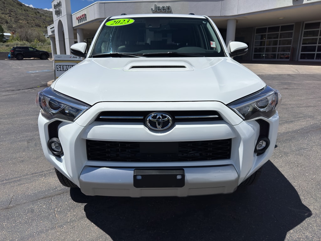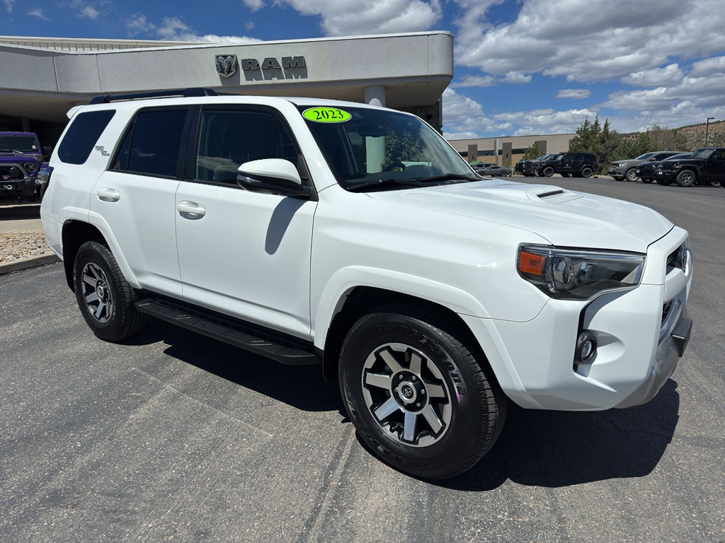 This vehicle is a certified CARFAX 1-owner. This mid-size suv has a clean CARFAX vehicle history report. The vehicle has a V6, 4.0L high output engine. When you encounter slick or muddy roads, you can engage the four wheel drive on this unit and drive with confidence. An off-road package is equipped on this 2023 Toyota 4Runner . You'll never again be lost in a crowded city or a country region with the navigation system on this vehicle. This unit offers Android Auto for seamless smartphone integration. Apple CarPlay: Seamless smartphone integration for this Toyota 4Runner - stay connected and entertained on the go! This mid-size suv's Cross-Traffic Alert: Safeguarding you from unexpected traffic when reversing. The Toyota 4Runner enhances safety with a blind spot monitor, alerting drivers to potential dangers in adjacent lanes. This mid-size suv has fog lights for all weather conditions. Keep your hands warm all winter with a heated steering wheel in this mid-size suv . Bluetooth technology is built into this mid-size suv, keeping your hands on the steering wheel and your focus on the road.
